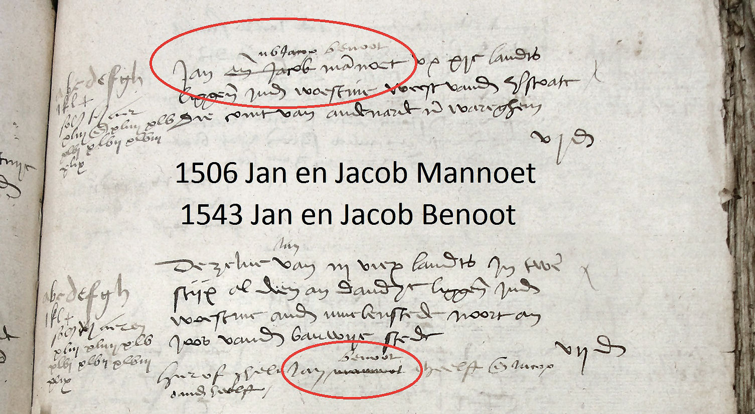 - De correctie met doorhaling gebeurde in 1543: "nu Jacob Benoot"