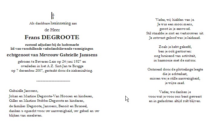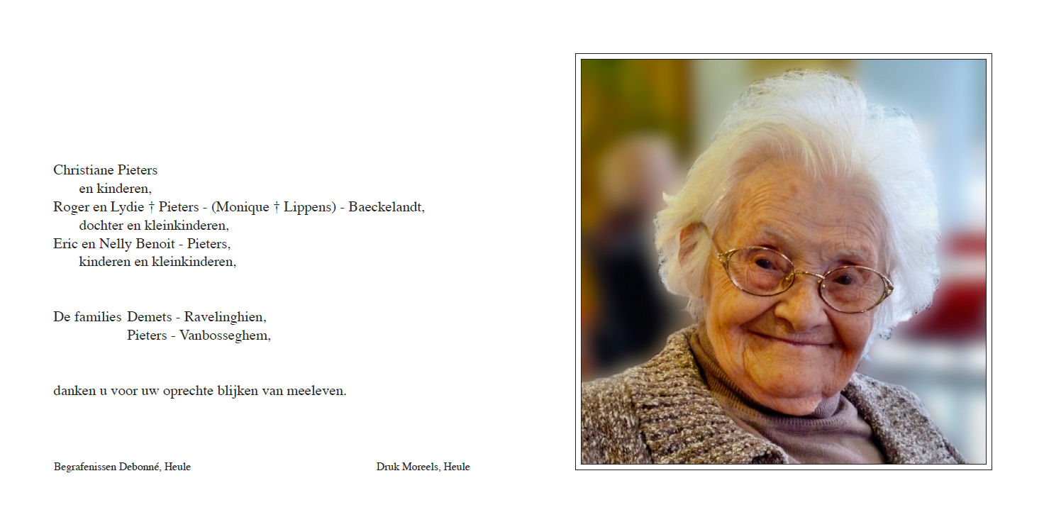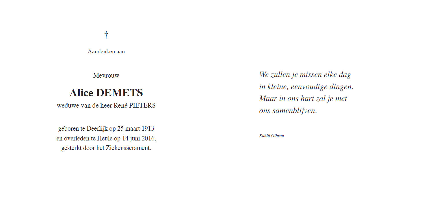 Overleden 06-01-2014 te Beveren Leie