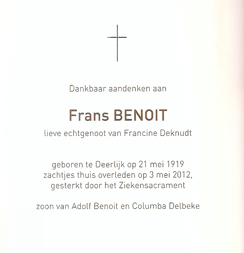 Weduwe van Frans Benoit +2012