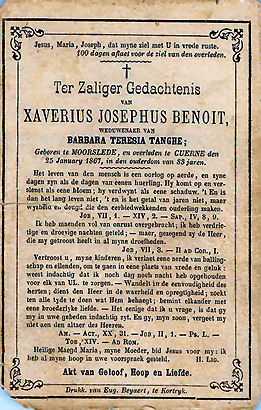 | Décédé | ven 25 jan 1867 à Kuurne St Katharina |